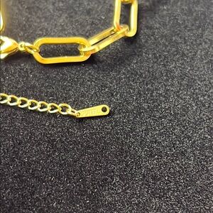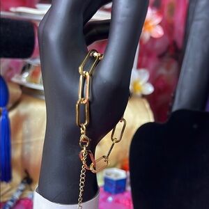 This elegant bracelet showcases a sleek chain-link design with elongated geometric links, all in a radiant gold finish. Its minimalist style and adjustable closure make it a versatile accessory for any occasion.