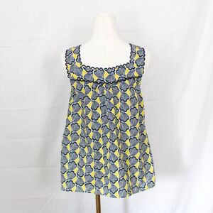 Boden Women’s Blue and Yellow Scalloped Shell Tank 100% cotton 8
