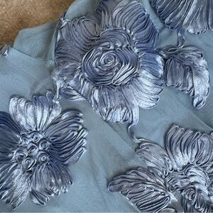 Step into elegance with this stunning blue floral strapless dress. Perfect for any occasion, this dress combines style and comfort effortlessly. Hemmed for 5’5, there are some stains that will come out with dry cleaning- reflected in price!