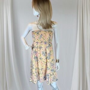 Chic tote with bold floral pattern. Features pink, blue, and gray flowers. Ideal for a stylish look.