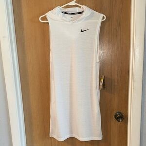 Nike sleeveless oversized, tank style cover-up with pockets and a hood. Lightweight and breathable. Ideal for active wear.