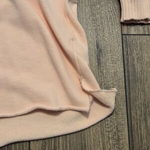 Embrace sunny days and coastal dreams with this charming soft pink graphic sweatshirt. Delicate embroidery captures a whimsical beach scene, featuring playful waves, a radiant sun, and the uplifting message 'SMILE + WAVE' alongside a sweet 'after sunset' sentiment. The relaxed, oversized fit drapes effortlessly, offering ultimate comfort and a laid-back silhouette perfect for easygoing days. Its raw hemline adds a touch of effortless, lived-in style. Ideal for casual outings, lounging at home, or as a cozy layer for a beach bonfire.