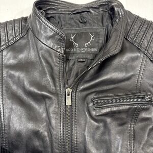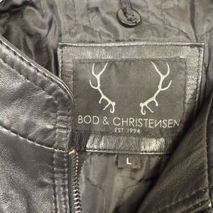 The Bod & Christensen Women LRG BLACK Leather Moto COAT Jacket is a stylish and versatile outerwear piece perfect for a variety of occasions. Made from high-quality leather with a softshell fabric type, this short jacket features a full zip closure and snap buttons for added convenience. The black color, lined interior, and designer biker theme make it a fashionable choice for winter, fall, or spring. Ideal for travel, parties, or casual wear, this jacket is a must-have for women looking for a chic and functional motorcycle style.