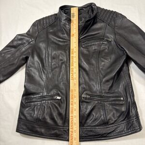 JACKET LEATHER MOTO Women LRG BLACK COAT QUILTED LINED SNAPS