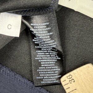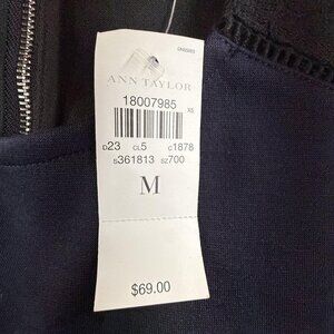 Ann Taylor Shirt Womens Medium Navy Black Lace Shoulder Short Sleeve Zip Back