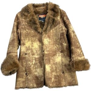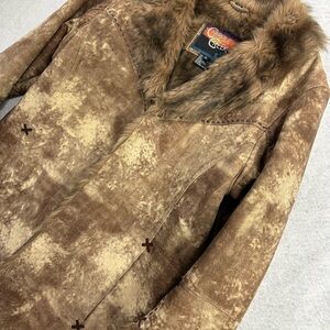 Cripple Creek Leather Penny Lane Western Style Coat Jacket Faux Fur Size XL