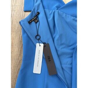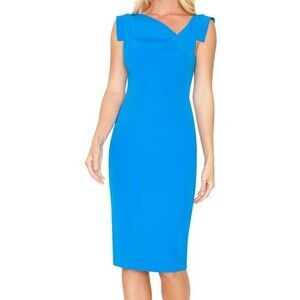 NWT Black Halo Womens Jackie O Blue Sheath Dress Size 14 Midi Celebrity Stretch