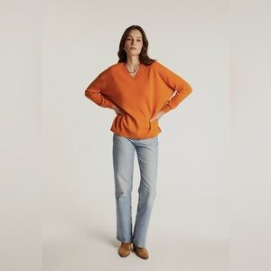 Stay cozy and stylish with this vibrant orange V-neck sweater. Perfect for any casual outing.