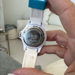 Stylish Ice-Watch with a white band and blue face. Perfect for any occasion. In great condition, just needs a new battery.