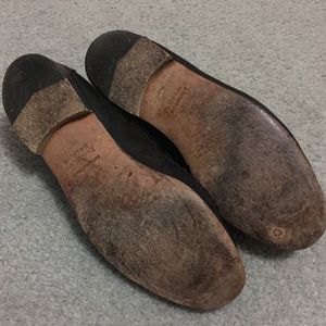 Johnston & Murphy men’s black tassel loafers in good preowned condition. See photos for one spot on the bottom of the right shoe. Size 10M.