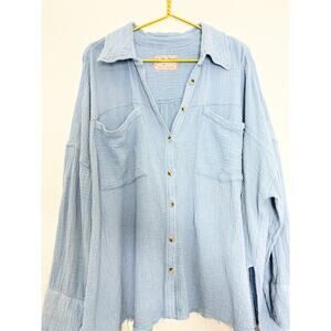 Free People Cardiff Oversized Top Size XL Blue Waffle Knit Boho Long Sleeve