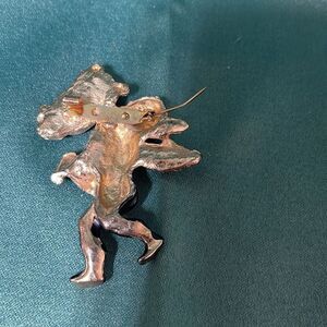 Elegant brooch featuring a black and gold angel and harp figurine design. Perfect for adding a touch of sophistication to any outfit. 2 1/2”X 1 1/2” Very gently worn.