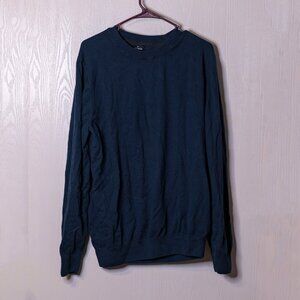 Navy sweater made of 95% cotton and 5% cashmere. Only worn a few times and kept in the closet. Super soft and has some stretch.