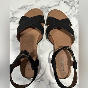 Keywords: LL Bean sandals, black sandals, ankle strap, criss cross, comfort shoes, casual sandals, summer shoes, flat shoes, everyday wear, travel sandals, easy on off, versatile