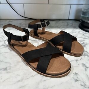 LL Bean Womens Black Ankle Strap Criss Cross Comfort Flat Sandals Size 11
