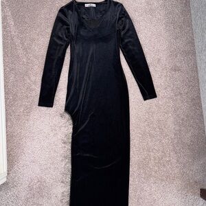 Elegant Velvet Black Long Sleeve Dress asymmetrical hem