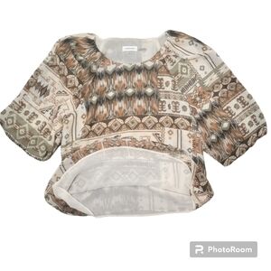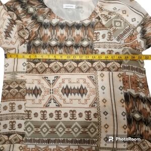 Calvin Klein Printed Crew Neck Elbow Length Sleeve Blouse Size Large