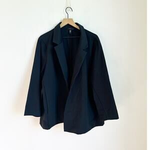 This is an Eileen Fisher Organic Cotton Open Front Notched Blazer in Black, size 3X Plus. It is in NWOT (New Without Tags) condition.