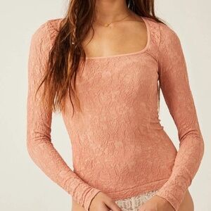 Free People Smoke Rose Have It All Pink Floral Crinkle Long Sleeve Textured Bodycon Top