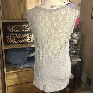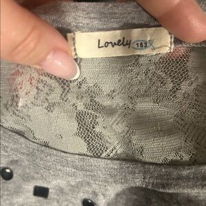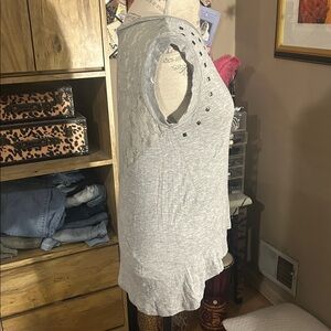 Gray Studded Women's Top with Lace Back - Medium