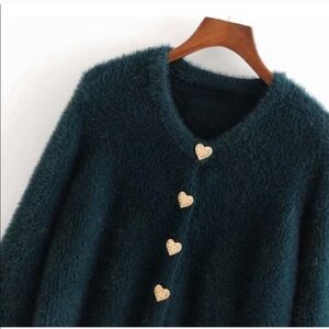 Zara Green Vegan Fur Cardigan Heart Jewel Buttons