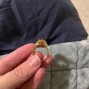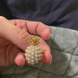 This exquisite gold ring features a playful pineapple design adorned with lustrous pearls. A perfect accessory to add a touch of elegance and fun to your ensemble.