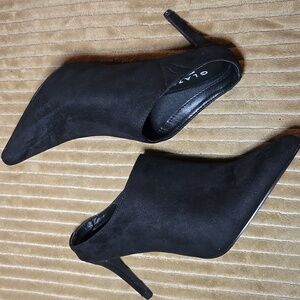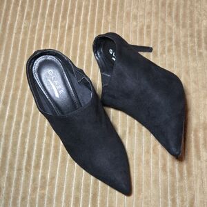 Chic black mules by Glaze. Sleek design with pointed toe. Ideal for versatile styling.