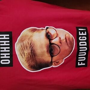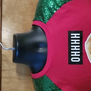 A Christmas Story Sweatshirt Oh Fudge Red Medium Juniors Women Sequin Sleeve . Red sweatshirt featuring green sequin sleeves and a graphic print on the front. Comes from smoke free home.