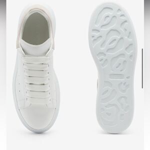 White smooth calf leather sneaker with a rounded toe and an oversized patchouli sole. The sneaker features large flat laces and are finished with an Alexander McQueen signature on the heel counter and tongue.