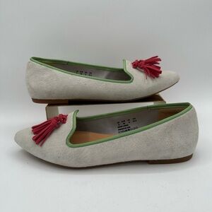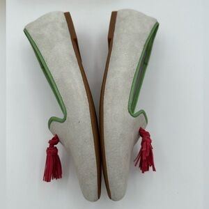 HUSH PUPPIES Bounce Grey Suede Sadie Tassel Slip On Flats w/Green | Size 8 1/2