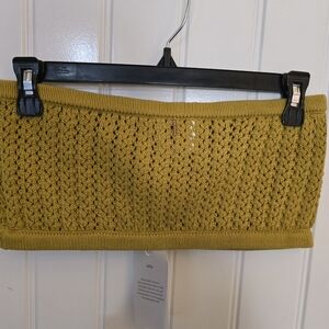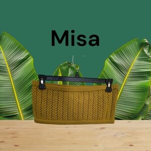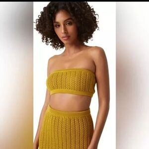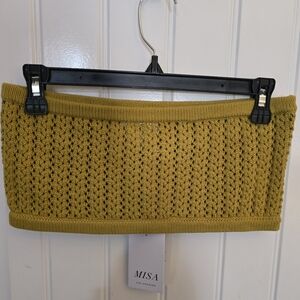 Stylish mustard yellow crochet top by Misa. Perfect for a chic look.