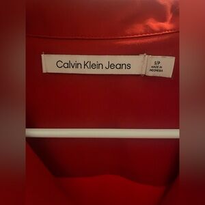 Bold red shirt with classic Calvin Klein Jeans label. Ideal for versatile styling.