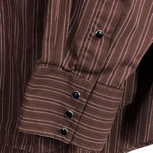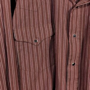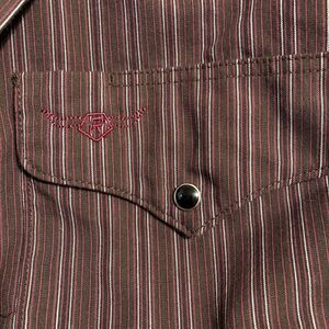 Vintage Western Pearl Snap Shirt Dark Red Black Stripe Flying R USA 18 1/2 37