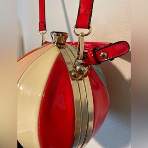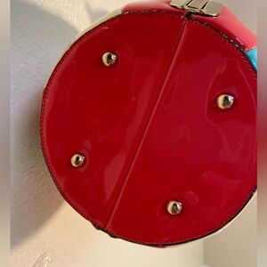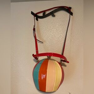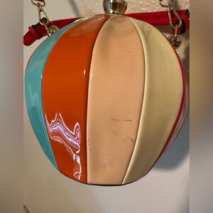 Add a pop of color to your outfit with this vibrant striped bag. Perfect for any occasion, this bag features a unique design with red, orange, cream, and blue stripes. Stand out with this stylish accessory. It’s a dirty on the outside but on good Condition look the Photos