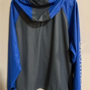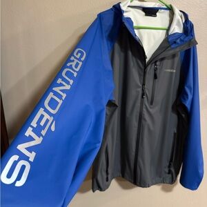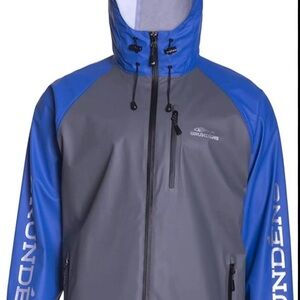 Experience ultimate protection with the Grundéns Men's Raincoat. This blue and gray jacket ensures you stay dry and comfortable in any weather. Worn once or twice!