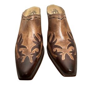 Charlotte Stone Hari Slingback High Heel Clog Size 7 Black Leather Gold Flower
