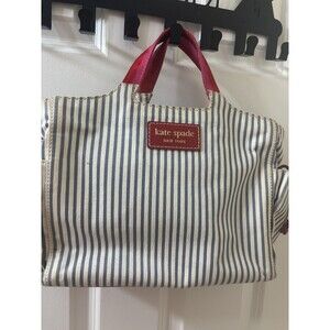 Kate Spade Canvas Leather HANDLE Tote Bag NAUTICAL BLUE AND WHITE BELT DETAILS