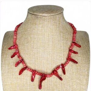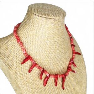 vintage jewelry, red coral necklace, branch coral, natural coral, choker necklace, winter fashion, holiday jewelry, boho jewelry, statement necklace, ocean inspired, festive tones, rare find, collector piece, eco vintage, handmade look, 90s style, coastal chic, cottagecore, artisanal jewelry, giftable, handcrafted necklace