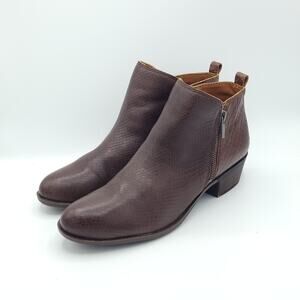 Free USPS Priority Mail shipping on this Lucky Brand Basel Reishi Snake Print Leather Booties in Brown, women's size 9.5, featuring a premium leather upper with a chic snake print pattern and a low block heel for stylish comfort. Please check photos for any damage and condition to ensure they meet your expectations. If you have questions or offers, feel free to message me!