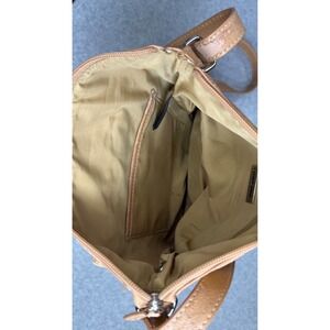 Golden glow meets everyday functionality with this charming crossbody bag. Woven monogrammed artistry captivates, while the light tan trim lends a touch of subtle sophistication. An array of pockets promises effortless organization for your essentials: a large, smartly designed front pocket with both a secure zippered compartment and a convenient flap-top pouch. The adjustable strap ensures a comfortable, customized fit, making this bag perfect for weekend explorations, farmers market visits, or simply brightening up your daily errands.