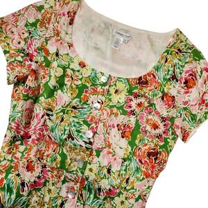 Coldwater Creek Midi Dress Size 14 Bright Floral Linen Blend Belted Cap Sleeves