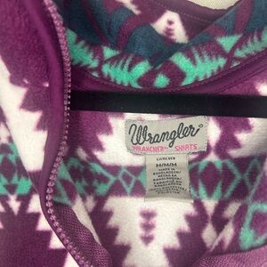 Wrangler Purple Green Aztec Southwestern Print Fleece Quarter Zip Top Equestrian