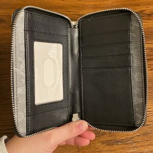 - Features: Zip-around closure, Multiple card slots, Cash compartment