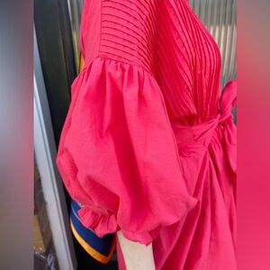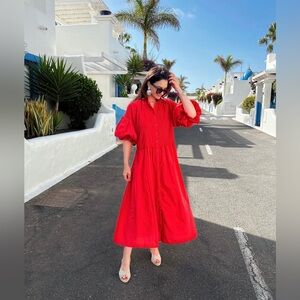 The Dress Phoebe Red is a stylish and comfortable garment made from 100% Egyptian cotton. With a one size fits all design, this dress is suitable for a range of sizes from US size : 2 / 4 / 6 / 8 / 10. Measuring a length of 130 cm, this dress is perfect for any occasion. Use machine washes at 30 degrees for easy care and maintenance