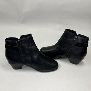 Clarks Women's Size 8.5 Emily Holly Black Leather Ankle Booties