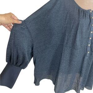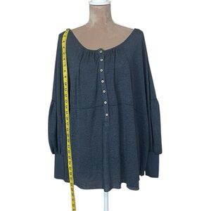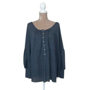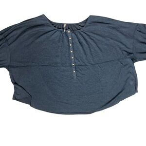 NWT Free People “Marla” Henley Oversized Boho Poppy Seed Blue Top