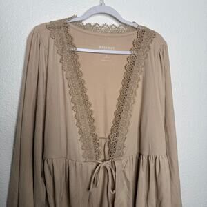 Torrid Womens Top Size 3X Super Soft Rib V-Neck Lace Trim Tie Front Long Sleeve