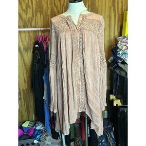 Easel Delaware Button Down Mineral Washed Long Tunic Pink Rose NWT Sz M