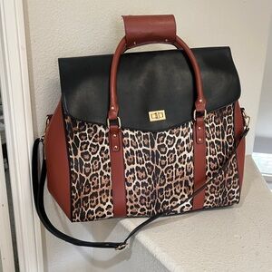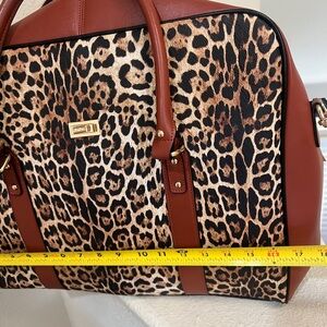 NWNT BADGLEY MISCHKA Leopard Vegan Leather Travel Tote Weekender Bag Luggage