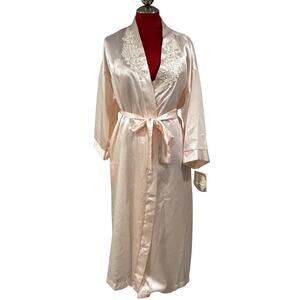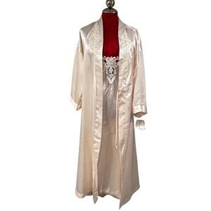 Vintage NOS Dentelle light pink silky satin peignoir set gown & robe size S